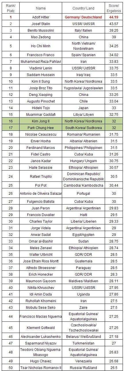 집권기간 중 업적은 독재지수에서 제외되었다.