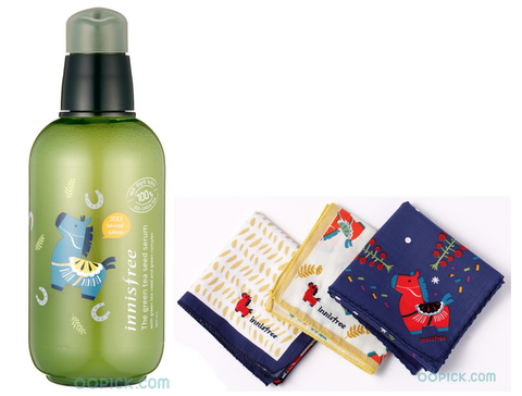 이니스프리의 베스트셀러 아이템인'더 그린티 씨드 세럼'이 귀여운 제주 조랑말 캐릭터를 등에 업고 돌아왔어요!세안 후 제일 처음 바르는 퍼스트세럼으로 제주 무농약 녹차씨앗이 까칠한 피부를 촉촉하게 케어해주고, 피부 속 노폐물을 말끔히 지워준답니다 :)구매자에겐 선착순으로 '에코 손수건'을 증정하니 지금 바로 서두르세요!