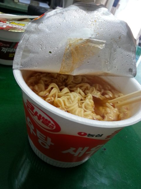 뜨거운물을 붓고 열의에 찬 마음으로 라면이 익기를 기다렸어요...