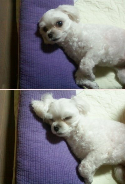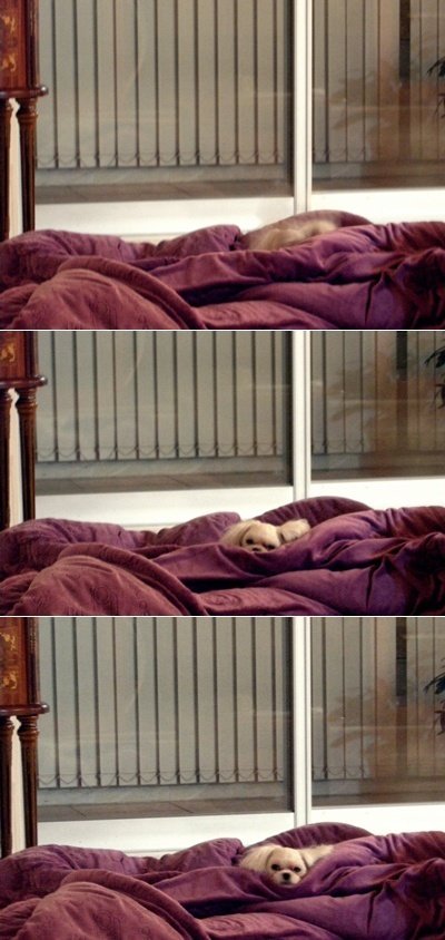 이불을 덮어주지 않아도 알아서 덮고 자더라구요.. 다른집 멍멍이들도 이렇게 자나요? ㅋㅋㅋ