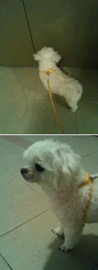 멍멍이가 미용하고 돌아올 때, 목욕한다고 물 적셨을 때
