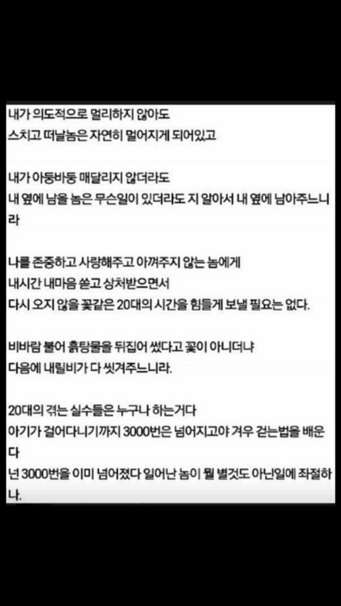 제일힘들고마음아팠던게 날볼때한없이사랑스럽게쳐다보던눈이 차가워진걸느꼈을때가 내마음이무너지는순간이더라