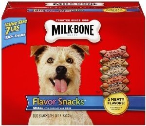 milkbone이라고 강아지들이 즐겨찾는 뼈다귀처럼 생긴 강아지 비스켓이 있으면 되요!