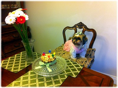 맘 놓고 먹을 수 있는 강아지용 케익으로 생일을 축하해 줬네요