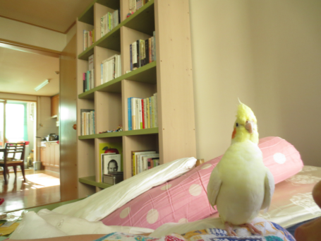 주인이 오면 퍼드득 날아 어깨에 앉고는 어서와! 라고 이야기해주기도 합니다.