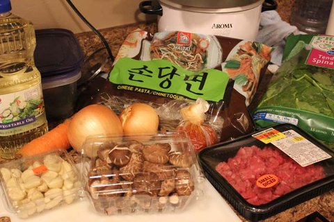 그러다 어느날 갑자기 잡채밥이 너!!!!!!!!!!!!!!!!!!!!!!!!!!무 먹고싶어서 마트가서 버섯이랑~시금치랑~당근이랑~고기랑~이것저것 다사와서 처음 만들어봤음