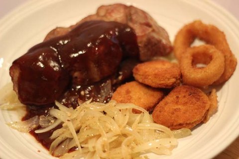어디서본건있어가지고 대충 얼핏 기억나는대로 고기는 후라이팬에 살짝구운다음 오븐에굽고 완전내사랑 양파 + 마늘을 소금후추에 달달복고 조금...조..금... 맛볼라고...치킨너겟이랑 양파링도 튀김.....