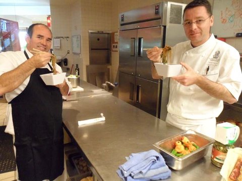 그러다 어느날은 총쉐프가 지나가더니 라면파티하는거보고