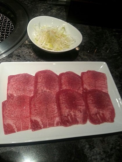 파를 곁들인 소혀구이..