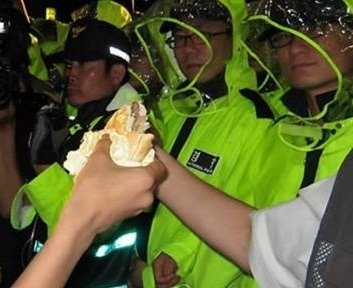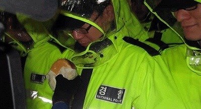저 시위하는 애들이 개념이 없는 거지. 명령 없인 제자리 이탈도 못하는 전경들한테 포장지 까서 입에 들이대고 먹으라고? 아오 생각이 있나 없나. 그냥 햄버거 상자 째로 전달했으면 나중에라도 전경들이 먹을 수 있었겠지. 전경들 눈앞에 들이밀 때 얼마나 빡쳤을까 어휴..