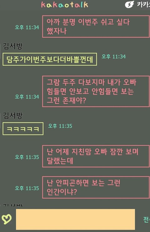 토요일은 만나려나..했는데 늬앙스가 토요일도 쉬고 싶어하는 것 같길래 이번주는 아예 쉬고 다음주에 놀자, 했더니