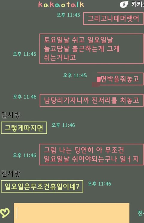 일요일날 쉴거냐고,
