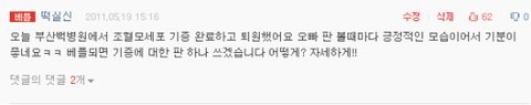 목요일인 어제 퇴원을 하고 이렇게 베플인증 판을 쓰고 있으니