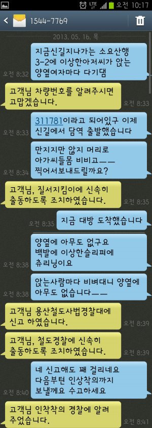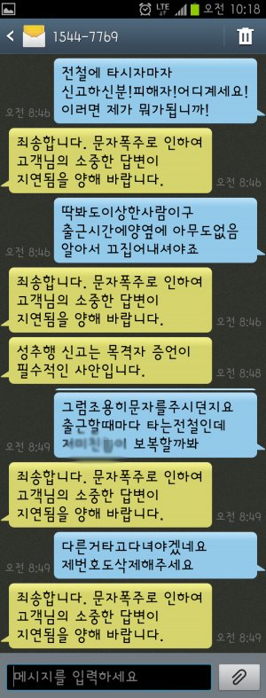 그렇게 경찰아저씨는 그 노숙자가 있는 칸으로 가셨구.. 저는 조금 진정을 찾고 문자를 다시 보냈습니다..
