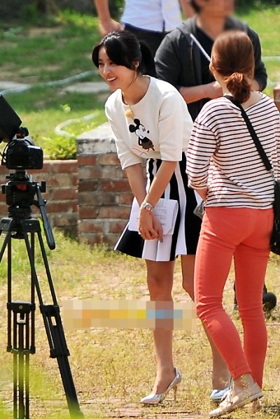 미키마우스 티셔츠에 저런 플레어 치마까진 귀엽다고 쳐도