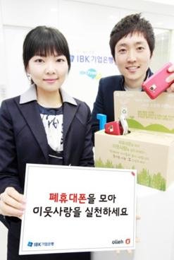 전국 IBK기업은행 영업점에 폐 휴대폰 수거함을 비치했다.