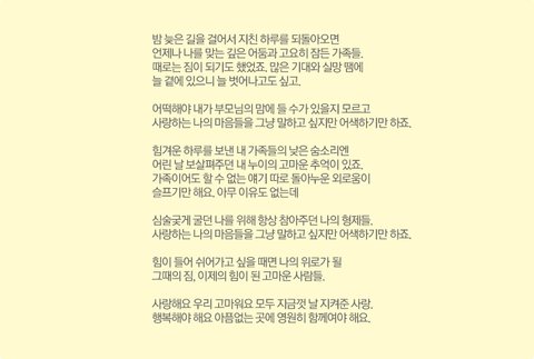 가사 속에 가족에 대한 모든 고민과 마음들이 담겨 있으니까요.
