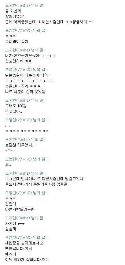 뭐 이렇게, 여차저차 이야기하고 좋은하루되라고 하며............ㅋㅋㅋㅋㅋㅋㅋㅋ