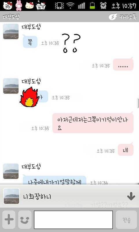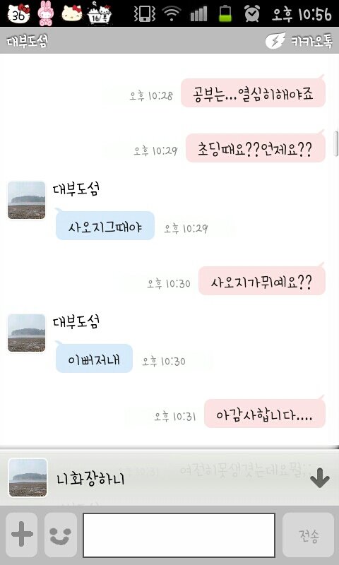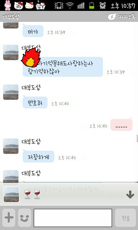 뭐죠.... 첨에 제카스에 댓글로 ㅎㅇ달앗길래 누구냐햇더니 카톡아이디달래요 주고 카톡 이렇게 왓는데 그뒤로 뭐 자기 엄마가 입원해잇는데 제 미래의 시어머님이라니 아버진 돌아가셧고 자기가 절 책임지겟데요 영원히 그리고 니화장하나카고 뭐죠? 지금 씹고 있어요