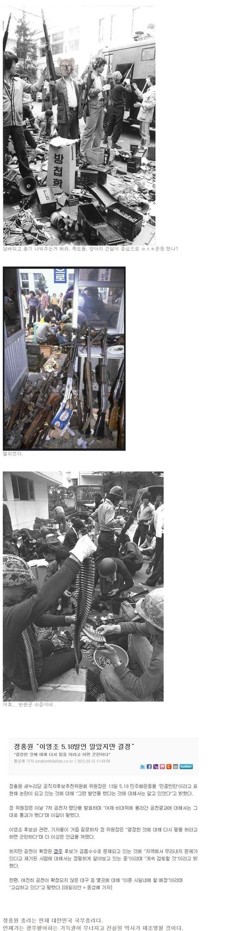 부디 청소년,20대 여러분들은 더이상 광주를 민주화운동이 아닌 광주 사태로 알아주셨으면 합니다.