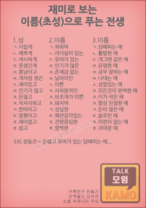 이름(초성)으로 자신의 전생을!!? 재미로 봅시다 ㅋㅋㅋ