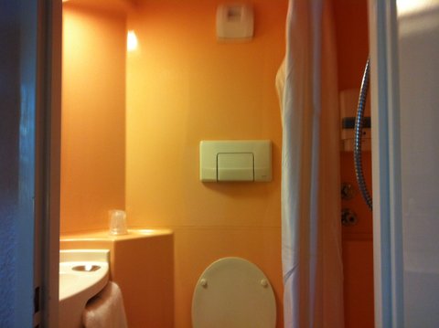공중화장실 변기 2개만한 공간에 세면대, 변기, 샤워부스가 다 있어요..