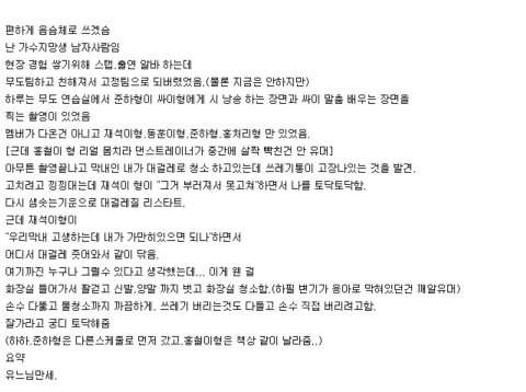 멤버가 다온건 아니고 재석이형,동훈이형,준하형,홍처리형 만 있었음.