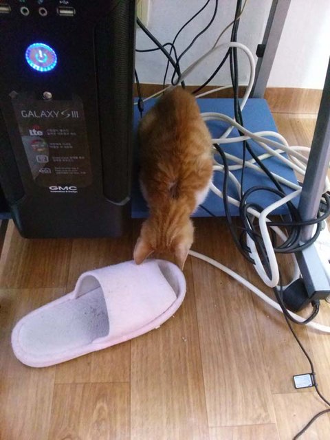 집에 왔을때 침대에서 이상한 소리가 나길래 봤더니 뒷발바닥을 젖먹듯이 쪽쪽 빨고있었던...