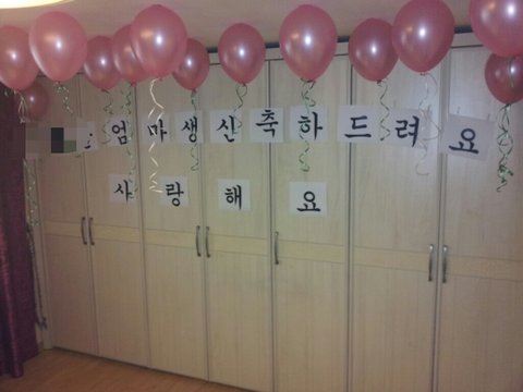 짜잔!! 할머니가 외출중이실때 엄마아빠가 몰래들어가서 준비한거임 ㅋㅋ울엄마 아이디어!!