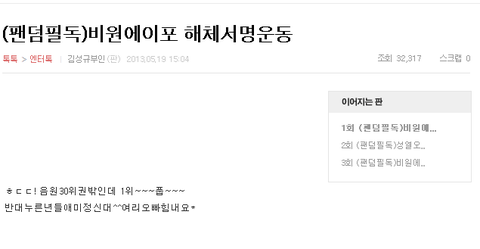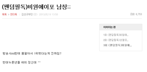 조회수 조작으로 베플에 자기글을 등록 시키고 있음