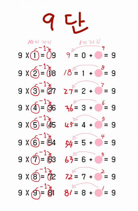 초딩 2학년 때 9단 외우기 싫어서 쥐어짜듯 발견한 법칙.