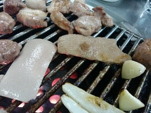 부평에 있는 불타는 소금구이집에 가서 껍데기를 시켜먹는데
