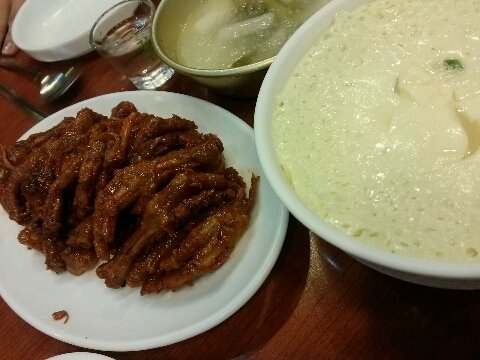 선지로 끓인 야채 스프. 선지 잘먹는데