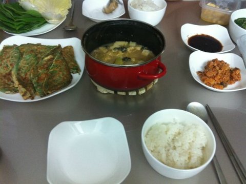 우렁쌈장과 깻잎참치전, 된장찌개로..