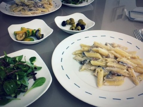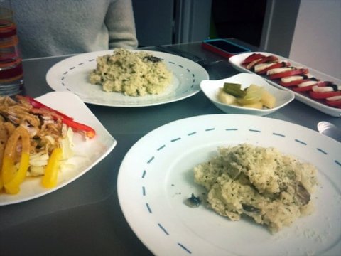 버섯 크림 리조토와 토마토 카프라제, 닭가슴살냉채..