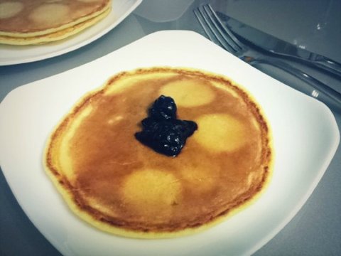 밤에 배고파서 밀가루 체쳐만든 팬케잌~