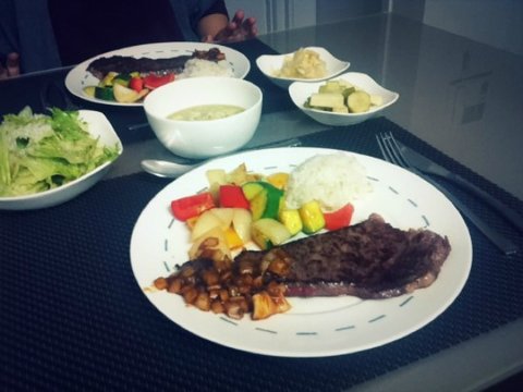 임신한 친구를 위해 준비했던 스테이크 만찬~