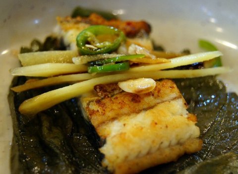 장어구이 한점 깻잎에 딱 얹고