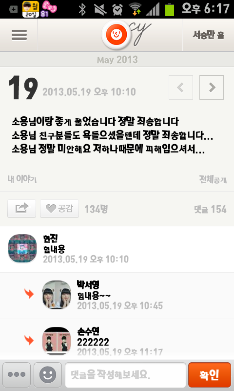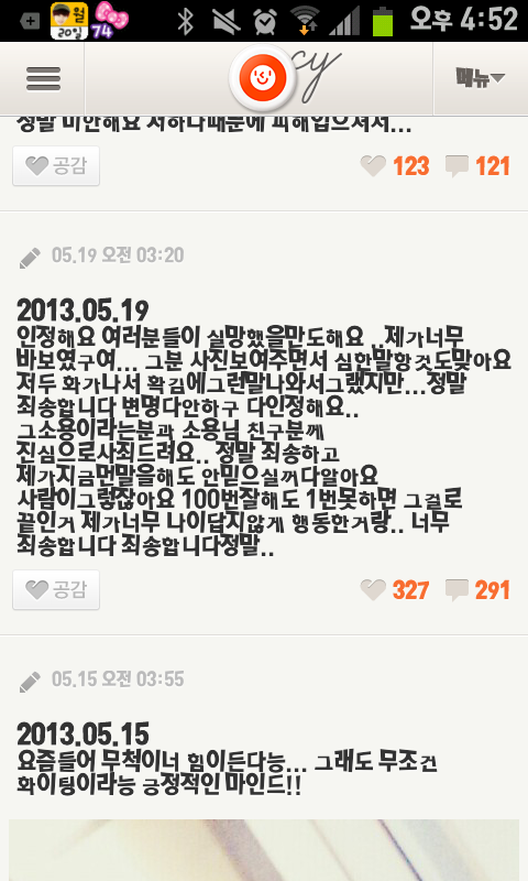 싸이월드 안하시는 분들이나 쯩마 미니홈피 주소 모르시는 분들은 모르실 수 있지만 싸이에 사과글 두번이나 올렸어요.