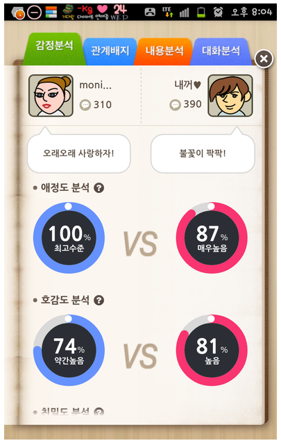 남친이랑 카톡한거랑 그냥 친구랑 대화한거랑 가지고
