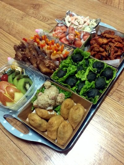 일주일 전부터 도시락을 일회용이냐, 찬합을 살 것이냐 고민하다가 짐이 많을 것 같아 일회용을 택했습니다.