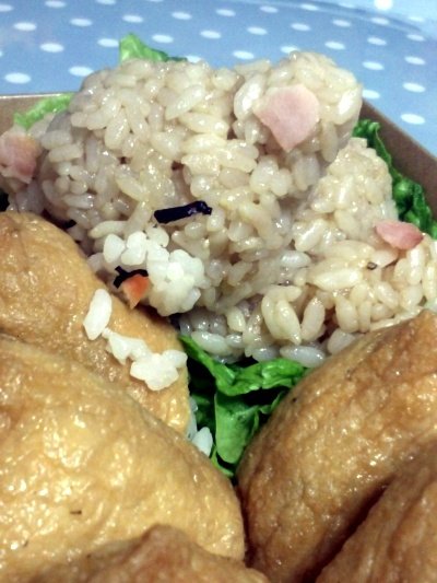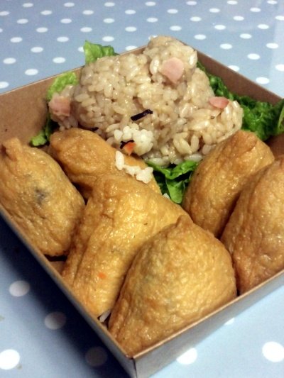 이건 유부초밥하고 리락쿠마 캐릭터주먹밥이에요.