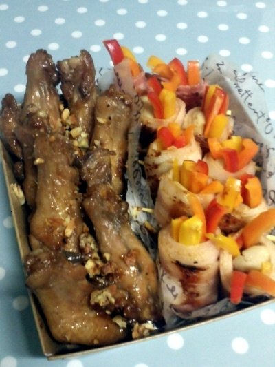 이건 왼쪽건 닭봉간장조림이랑 오른쪽은 베이컨말이에요.