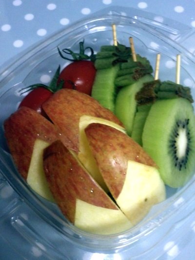 마지막은 과일도시락. 별거 없이 방울토마토 넣고 사과 깎아서 넣고 키위 깎아서 넣었어요.
