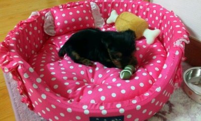 좀 큰 쿠션에 올라가 있는거 같지만...