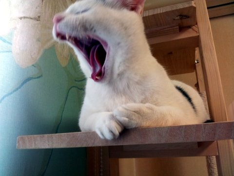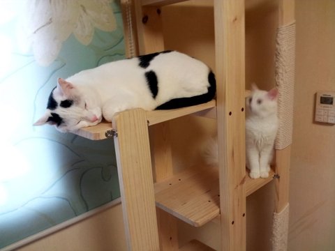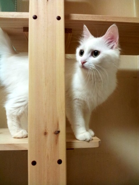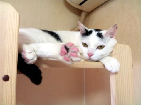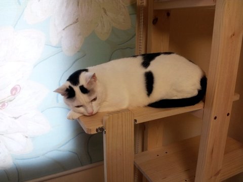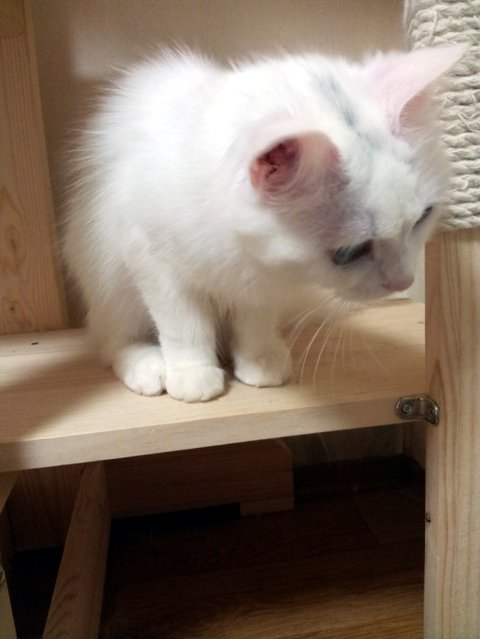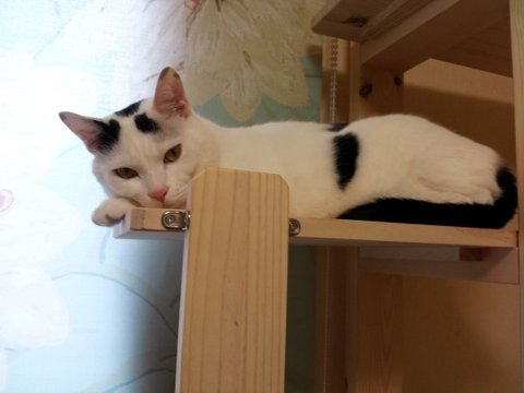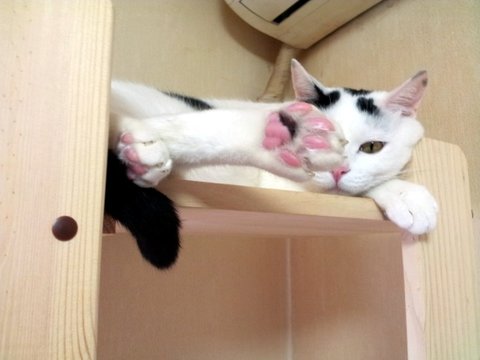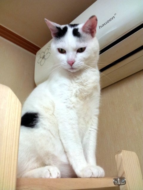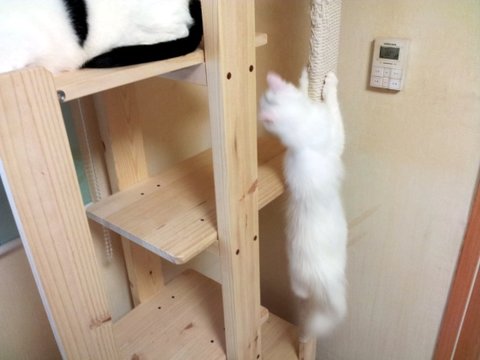후다닥~ 옆에 있는 공기 청정기 밟고 점프!