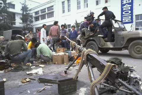 5. 20일, 가장 비극적이라고 말해지는 "도청 앞 계엄군 일제발포" 시, 시민군이 먼저 총기를 쏘았다는 증거나(뒤에서 탈취당한 총기로[칼빈]총을 맞은 시민군의 부검결과) 증언들이 나오고 있다는 점 (에 따라, 화려한 휴가, 26년 등의 영화가 왜곡의 극치라고 주장 [실제 역사와 맞지 않는 부분이 많이 지적됨])