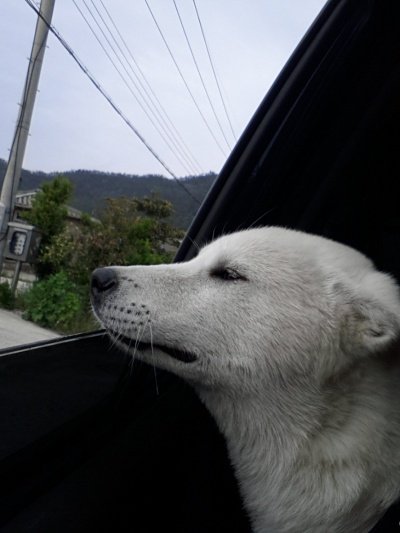 차타고 가는길인데 예전에는 엄두도 못내던 애가 요즘 .. 창에서 불어오는 바람을 즐김.