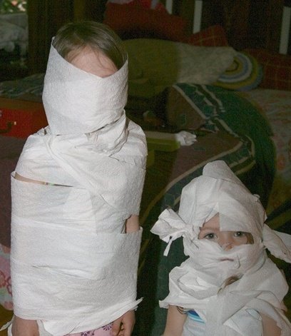 티슈를 뽑기 보다는 두루마리 휴지로 미라가 되겠다는 심보!