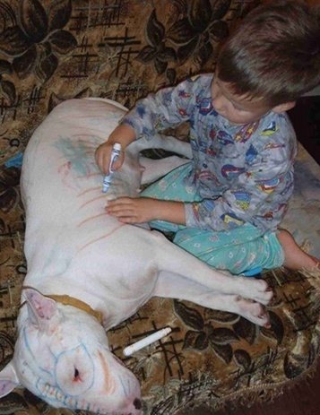 강아지 낙서?! 훗 난 동생얼굴에 아트를 선사하였어